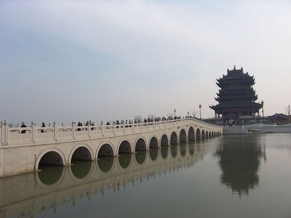 Cầu Phổ Tế đi qua các thờ Quán Âm Bồ Tát dài 19 nhịp, trước cầu Phổ Tế có cổng bi phường trên đề bốn chữ Thủy Thiên Phật Quốc, qua cầu đến Quán Âm Các ở đảo nhỏ giữa hồ, các có chiều cao là 46m, bên trong tôn trí tượng Bồ Tát Quán Âm bằng đồng thếp vàng cao 33m, nặng 80 tấn, đây là tượng Quán Âm được thờ trong các cao nhất Trung Quốc, quanh tượng Bồ Tát lớn còn tôn trí 9999 tượng Bồ Tát Quán Âm cũng làm bằng đồng cao hơn 3 tấc. Trong chùa còn có các Thiền phòng và Trai đường để thuận tiện cho khách hành hương đến tham quan lễ Phật có thể an trú, nhà lưu thông các pháp vật Phật Giáo cũng như Kinh sách. Chùa Trùng Nguyên là một công trình vĩ đại của Phật Giáo Trung Quốc, nơi thể hiện phong cách kiến trúc truyền thống của tự viện Trung Quốc đương đại, là một trong những danh thắng nổi tiếng bậc nhất của miền Giang Nam.