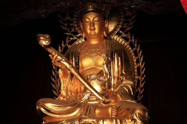 Cổng Tam Quan của chùa được đặt ở cuối đường Lễ Phật Đại Đạo, xây dựng theo kiến trúc cổng thành cổ, trên cổng treo tấm biển có đề ba chữ đại tự Trùng Nguyên Tự do Triệu Phát Sơ viết, hai bên có hai biển đề Giang Nam Đại Quan và Tiêu Lương Di Tích. Hai bên cổng chùa còn có hai thạch Kinh Tràng khắc chú Tôn Thắng và Chú Đại Bi. Thiên Vương Điện của chùa được tôn trí Đức Phật Di Lặc và bốn vị Thiên Vương sau lưng Phật Di Lặc là tượng Đức Hộ Pháp. Hai bên Điện Thiên Vương là hai lầu chuông trống, trên lầu trống treo một cái trống lớn có đường kính 2m19, xưng là trống to nhất Trung Quốc, lầu chung treo đại hồng chung nặng 12 tấn.