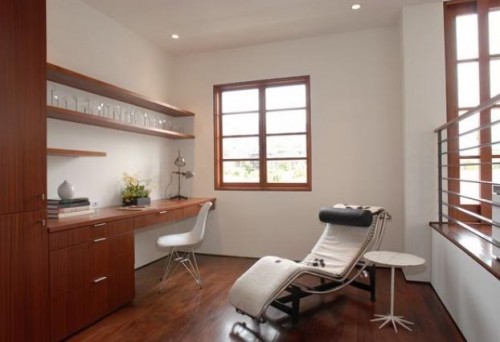 Phòng ngủ của khách, một cửa sổ nhô ra ngoài, thư viện và nệm nằm đọc, vật dụng bố trí tối thiểu để có không gian tối đa.Tọa lạc ở Venice California, ngôi biệt thự Thatcher House được thiết kế bởi kiến trúc sư Rudolph Schindler năm 2008. Ngôi nhà là sự pha trộn của chủ nghĩa hiện đại Nhật Bản đương đại kết hợp với nội thất kiến trúc California. Nằm bên bờ biển Venice, tiêu chí của ngôi nhà là mở tối đa để tận hưởng khí trời và gió biển. Toàn bộ các cửa phòng đều làm bằng kính trượt, bo gỗ, bê tông là thứ không hiện diện nhiều trong ngôi nhà này. Gỗ và gỗ, phong cách Nhật luôn khai thác tối đa vẻ đẹp ấm áp và sang trọng của chất liệu này. Với một phòng khách rộng lớn, phòng sảnh, phòng ăn, phòng thư giãn và nhiều phòng ngủ, dĩ nhiên không thể thiếu phòng tắm đẳng cấp như một spa... Ngôi nhà đem đến một không gian tiện nghi, ấm cúng và sự thư giãn tuyệt đối.